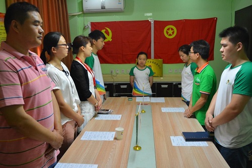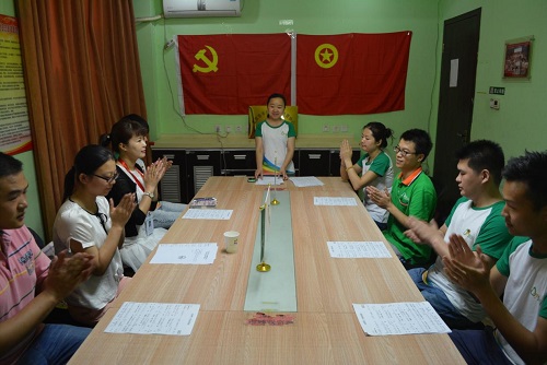 团支部成立仪式在庄严的国歌声中拉开序幕。根据团章中的选举权与被选举权的规定,经过充分的酝酿和讨论,大家以举手投票的方式选出了团支部干部(侯思远、袁曙霞、张高龙),分别担任团支部书记、组织委员和宣传委员。