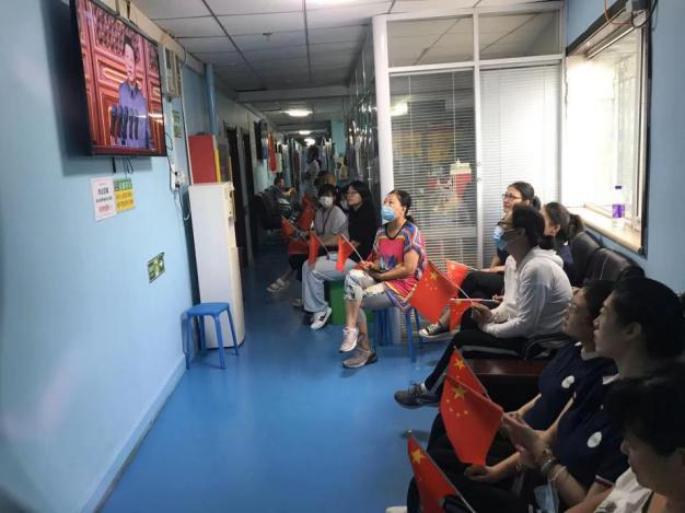 今天,庆祝中国共产党成立100周年大会在天安门广场隆重举行,中共中央总书记、国家主席、中央军委主席习近平发表了重要讲话。北京馨翼教育党支部组织广大党员干部、积极分子以及群众认真收看本次大会,深入学习习近平总书记在庆祝大会上的重要讲话。
